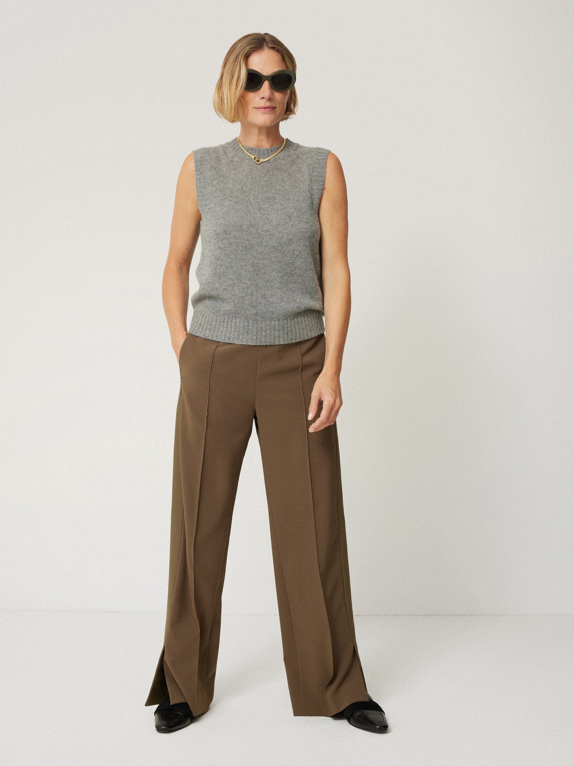 Our best-selling tank arrives in a new fabrication this Autumn: fully traceable Mongolian cashmere sourced from one of the worlds leading cashmere spinners. High crew neckline shape with a deep ribbed hem. Perfect for layering over a shirt or printed dress, or simply wear alone with high waisted trousers. This versatile piece promises endless wardrobe combinations.